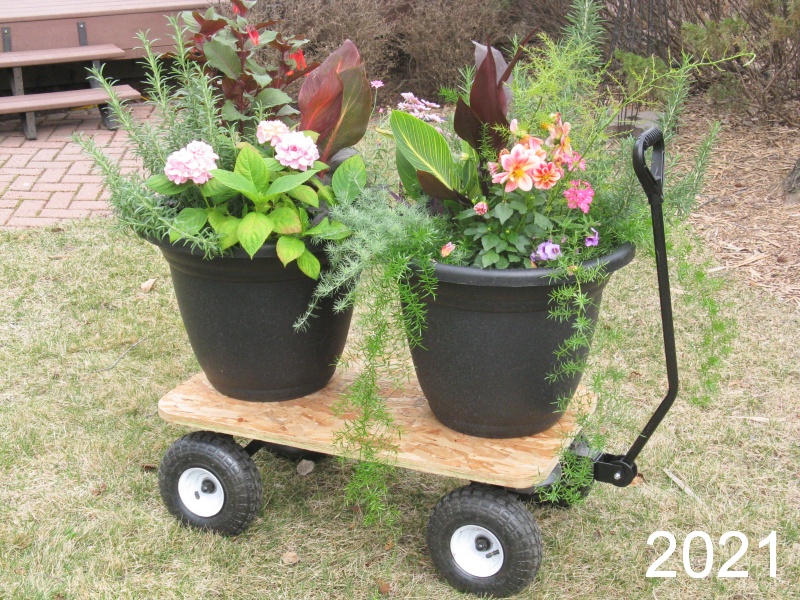 When spring rolls around we usually purchase potted plants and this typically happens early enough so that there is still the risk of frost at night. As a result the plants usually get taken into the garage at nights until around Victoria Day. This transfer process is made much easier by using a cart rather than carrying the planters one at a time.