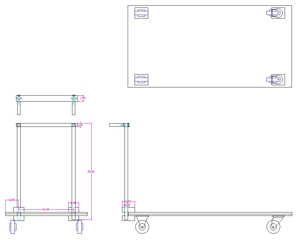 That completed the base of the cart. Here it sits on the floor with the aerodynamic curved front toward the camera.