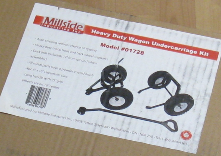 I was pleased to find a wagon undercarriage kit available from Home Depot since most of the complete carts wouldn't work well for our application. It was even a sort of a deal since the whole kit cost significantly less than just four individual wheels.