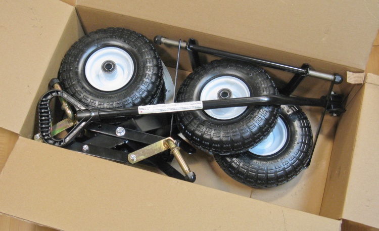 The contents were as expected; a pair of rear wheels with a fixed axle and a pair of front wheels equipped with a handle-driven steering mechanism.
