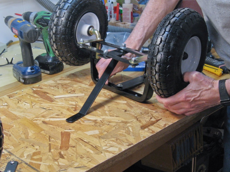 I selected smaller wheels - in this case 4" diameter - just to minimize the storage space the cart would take for the 11 months it isn't being used. The wheels are solid rubber rather than pneumatic so the cart isn't as ATV-like as 2021's but that's not a big problem since its theatre of operations includes only the garage floor and the brick walk.