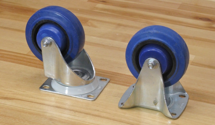 I started this year's cart by selecting a set of wheels (or technically casters since they are already mounted to an axle and swivel mechanism).