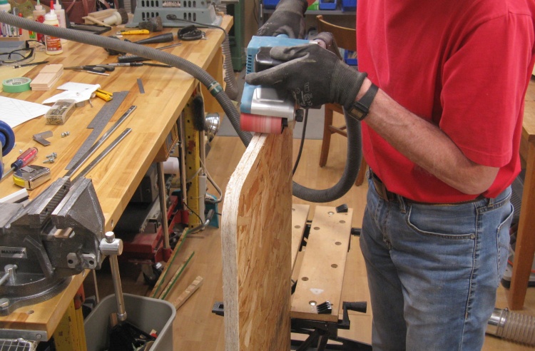 The edges of the OSB were pretty rough (and in some cases, green) so they got smoothed off/decolorized using a belt sander.