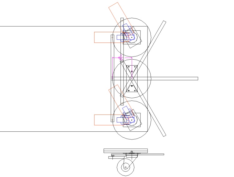 The levers were to be plywood that fit into the metal frame of the casters while the rest of the steering mechanism was made from spare metal rods (from broken quick-grip clamps).
