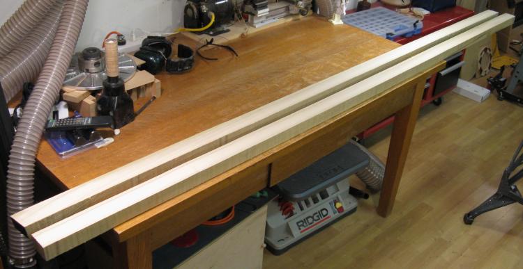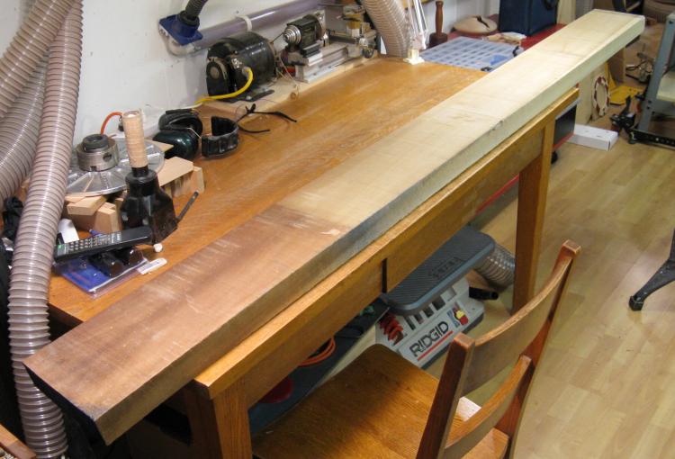 The specimen shown here is a bit over 7', which was fine for the two-piece approach. It was also just over 2" thick which worked well for the desired width of the shafts.