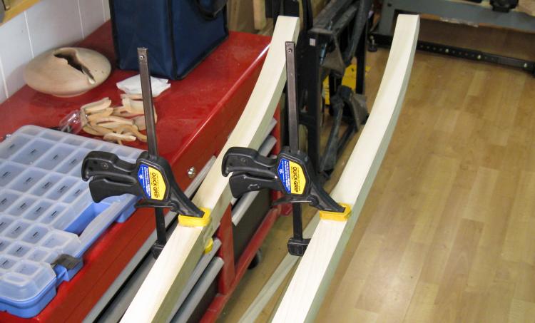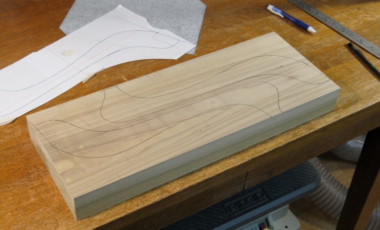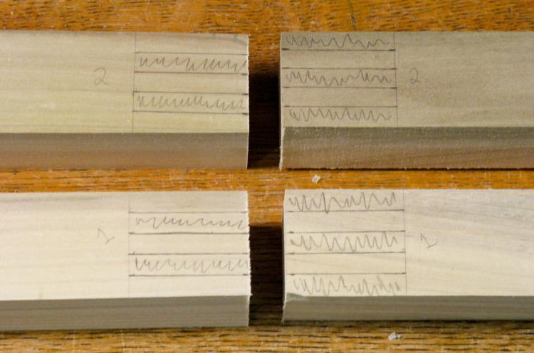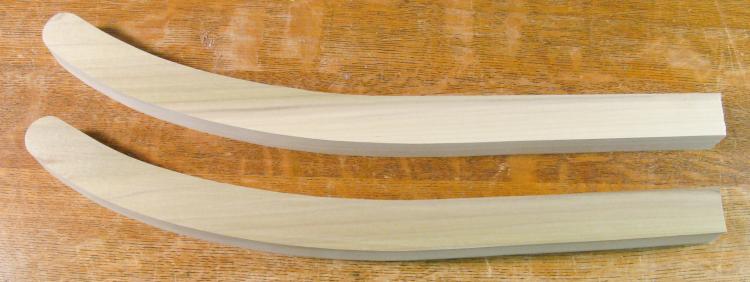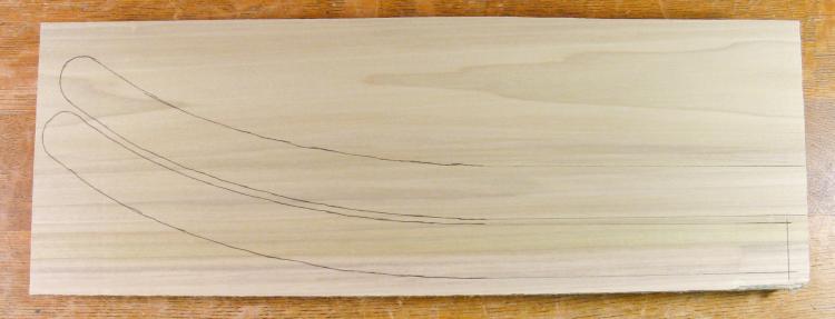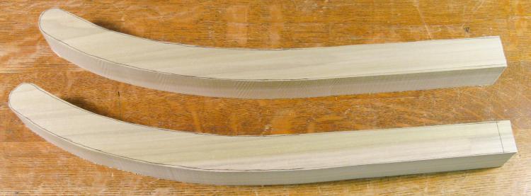 The next step was to make the curved ends. A shorter piece of the Birch was marked with the profiles of the two ends as shown here.
