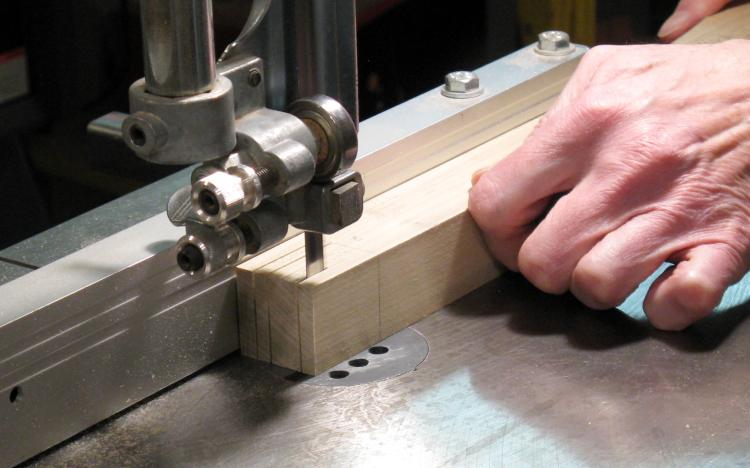 The bandsaw with a carefully-set-up fence was used to cut the edges of the fingers.