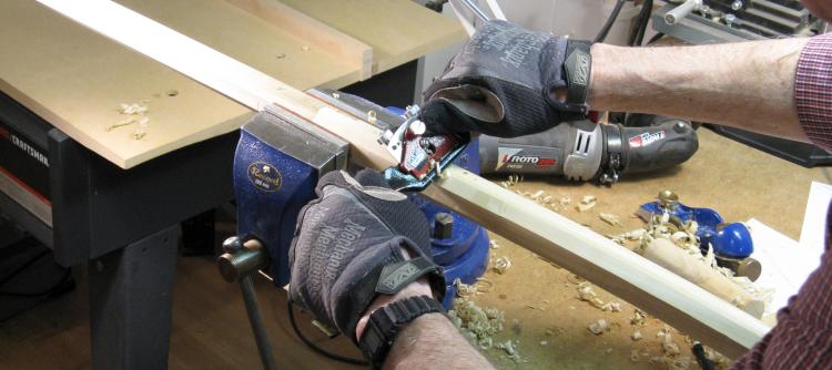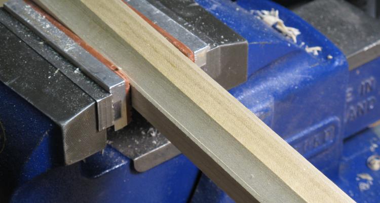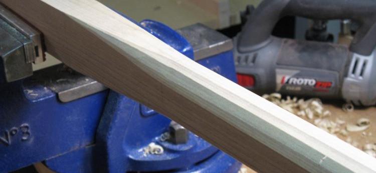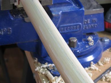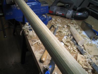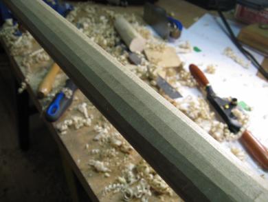 The bevelling operation made the shafts (almost) octagonal. The largest bevel bit I had wasn't actually quite wide enough and it left a small ridge so I removed that first using the spokeshave.