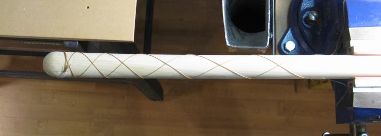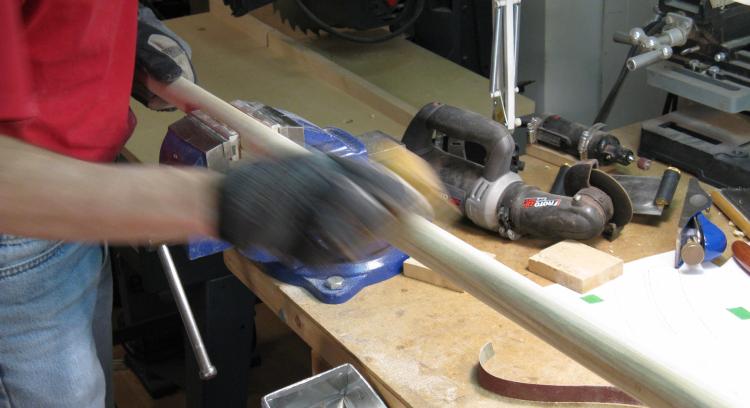 ...and some more sanding with sturdy strips cut from belts for a power sander to help round the shaft.