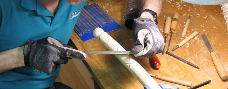 The grooves were widened and rounded using files and then smoothed using sandpaper.