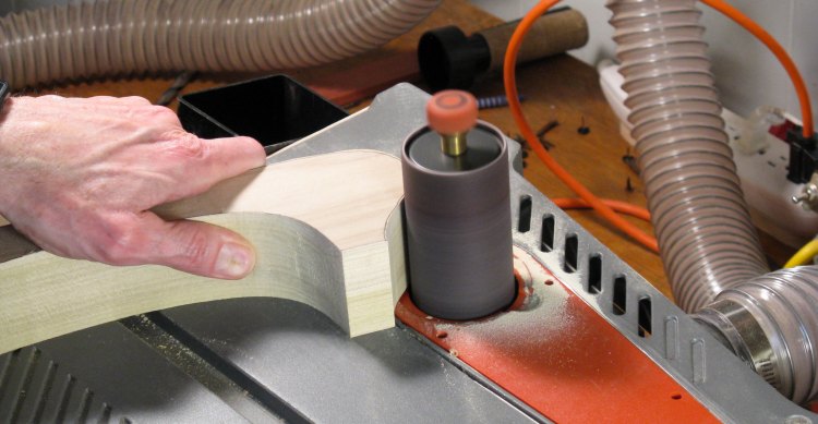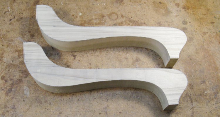 The arms were thicker than I needed, so after this shot they were trimmed narrower on the bandsaw and run through the planer to remove the saw marks and equalize the thicknesses.
