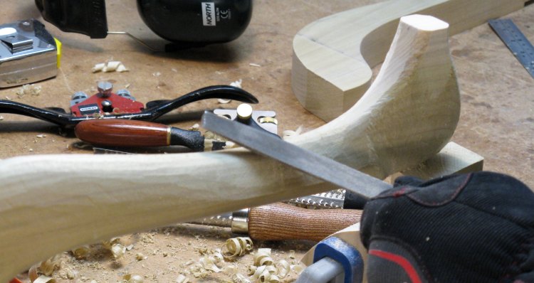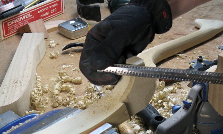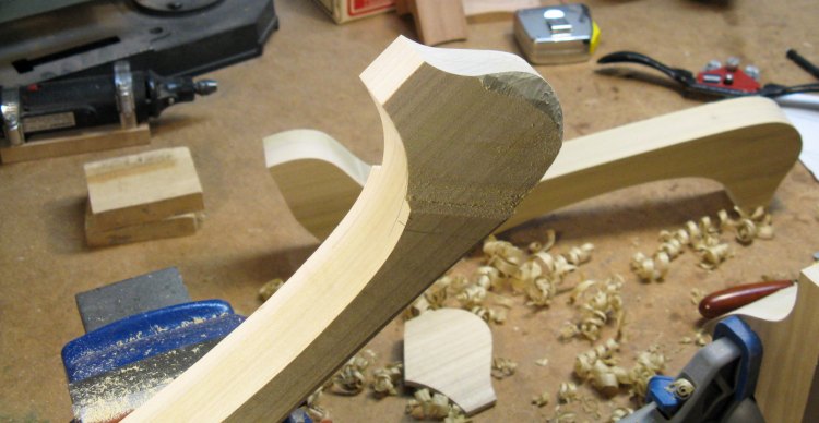 Some of the edges that were a bit too curvy for the spoke shave were shaped with a round microplane rasp.