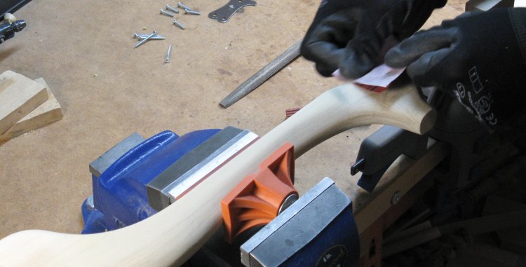 And then some of the file marks were smoothed out a bit more by sanding with 100 and 120 grit to round everything off;