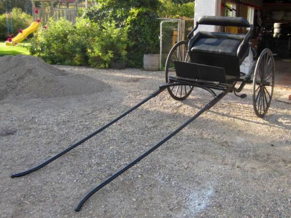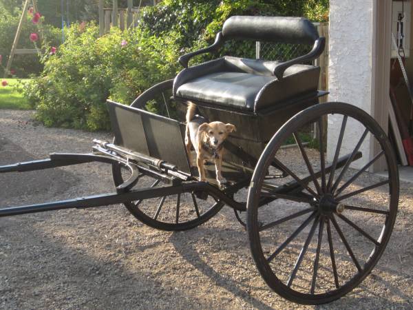 Both the shafts and armrests were made from birch. The shafts mount to the frame of the cart and extend about 8 feet in front to provide plenty of room for Connor's hooves. The armrests also provide support for the backrest. Some construction details can be found