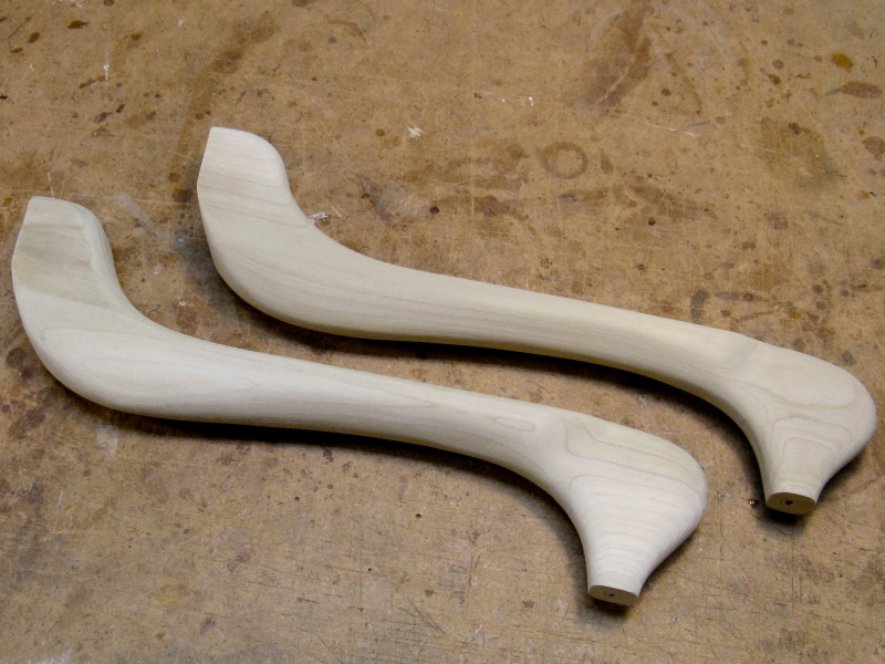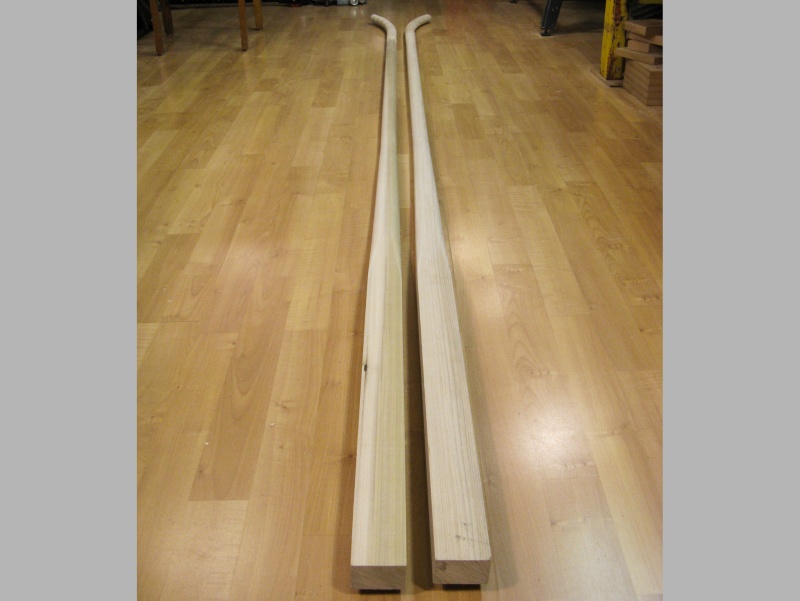 My brother-in-law's family has a horse cart of uncertain age that they were planning to refurbish. In addition to a fresh coat of paint, the effort also included making it a better fit for their large Clydesdale draft horse called Connor. To improve the fit, some longer shafts were required, and I was recruited for that particular task. Then after looking over the cart, I also volunteered to make a new set of armrests too since the old ones were mismatched and rather, well, let's just say "inelegant" metal pieces.