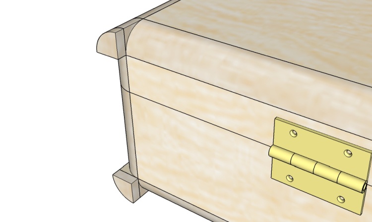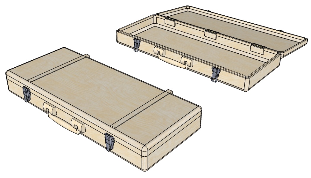Unfortunately, that required me to not forget about them when I was routing the case corners. I forgot about them. So now the corners are nicely rounded in all directions and the case would teeter on the hinges.