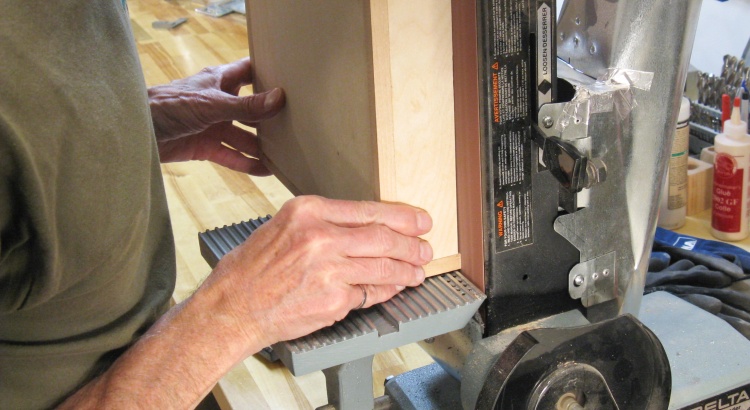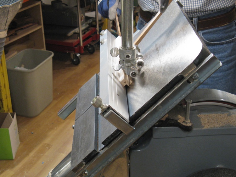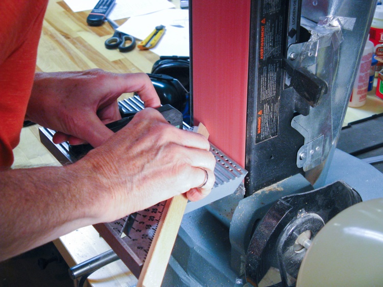 The bandsaw always leaves a rough surface so that newly-cut bevel was smoothed out using the horizontal belt sander.
