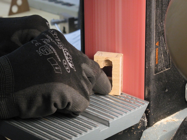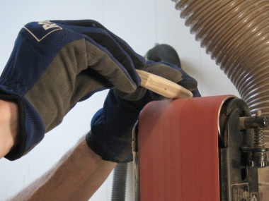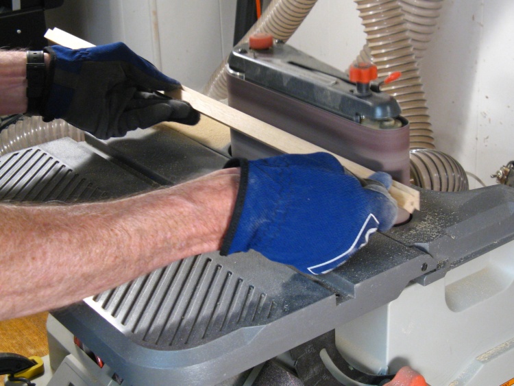 Using the belt sander for bevelling the end