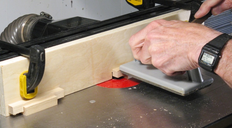 I routed off only small amounts of wood each time, working up the full 1/4" depth. The two featherboards provide pressure to hold the wood against the bit as it is slid through.