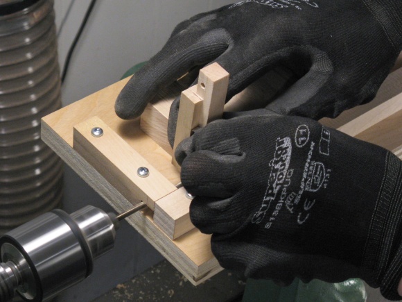 Then it was back to the horizontal drilling jig to drill the holes. Technically these could have been drilled easily on the drill press but the jig was already set up for the proper hole location relative to the edges.