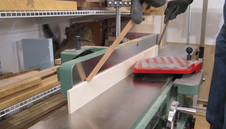 To get the frame pieces down to the final size of 0.75" square, I first jointed two adjacent sides so they were flat and square with each other. Then with these flat surfaces down, they went through the planer to get them to the final size. Usually I need to worry about planer-caused snipe where the ends get thinned a bit more than the rest of the board but for my non-critical application I was able to ignore this 0.005" difference.