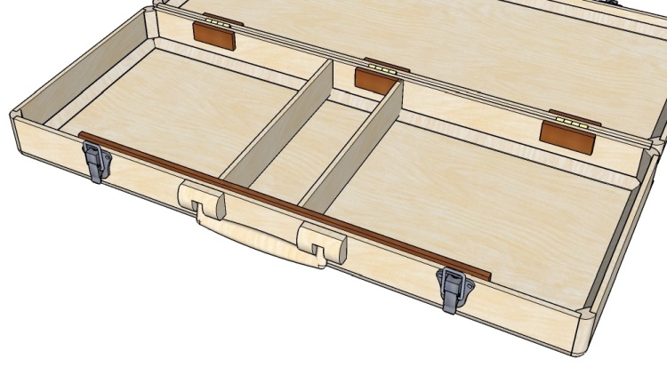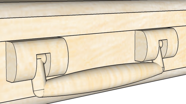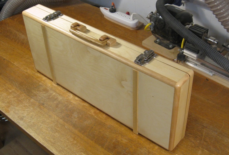 I had envisioned a folding handle similar to the original incarnation of the case but I couldn't find suitable commercial hardware. Oh well, I'm retired; I'll just make my own.