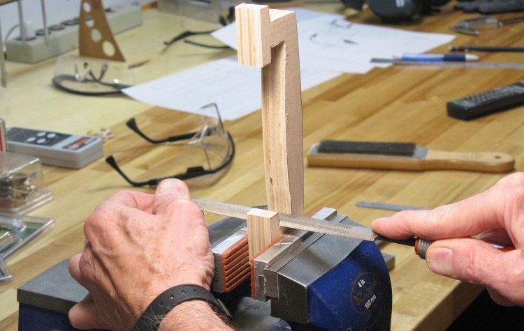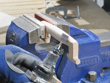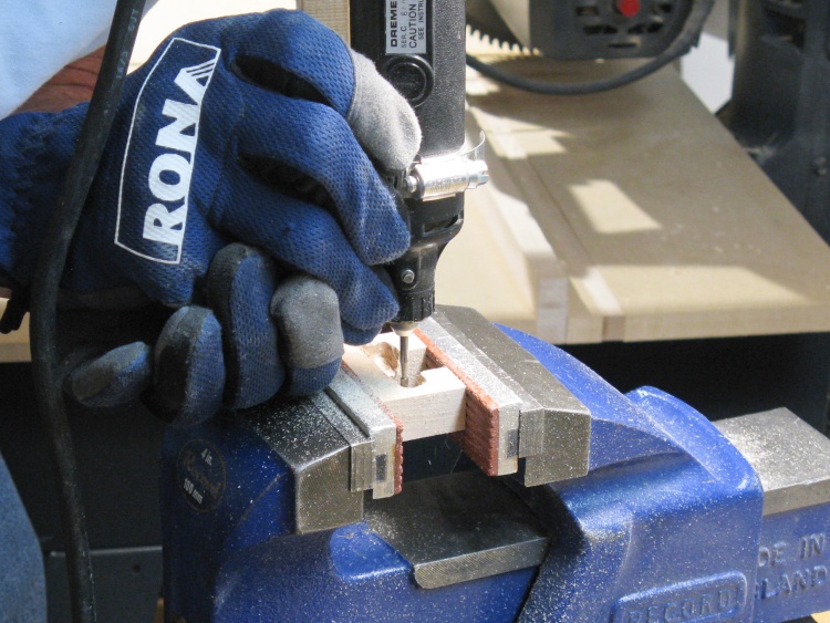 Drilling a pin hole in the end of one of the frame pieces
