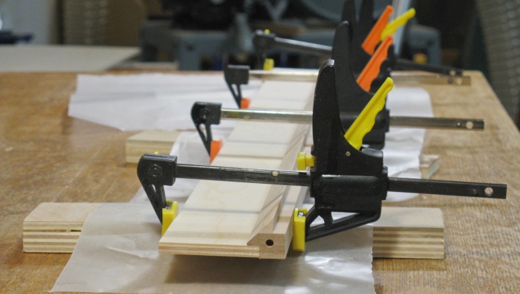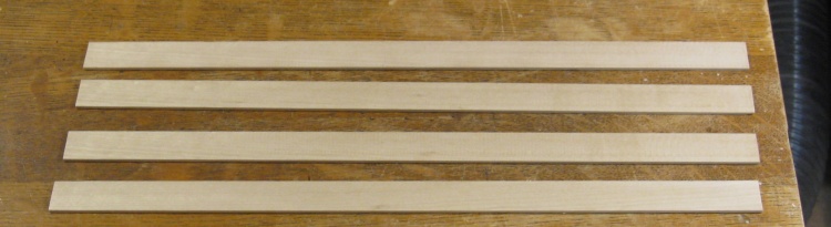 Here four straps about 0.1" thick have been made from another piece of birch.