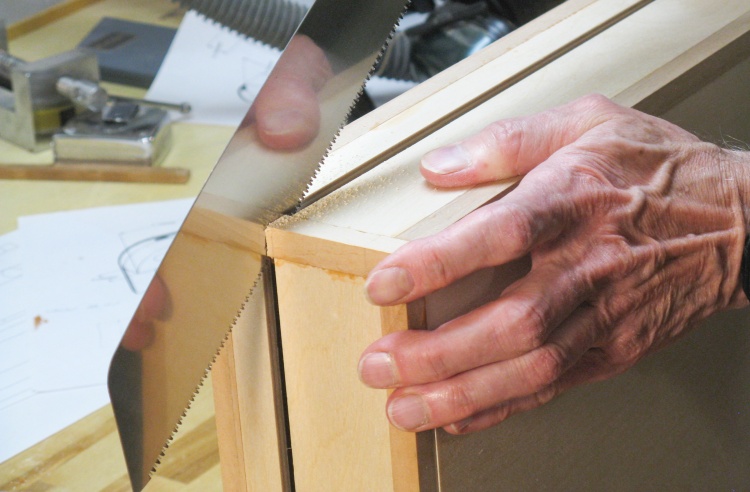 Two pieces comprise each short corner of the frame, but to avoid fiddly short bits of wood they will be made as extra-length single pieces and then cut apart later.