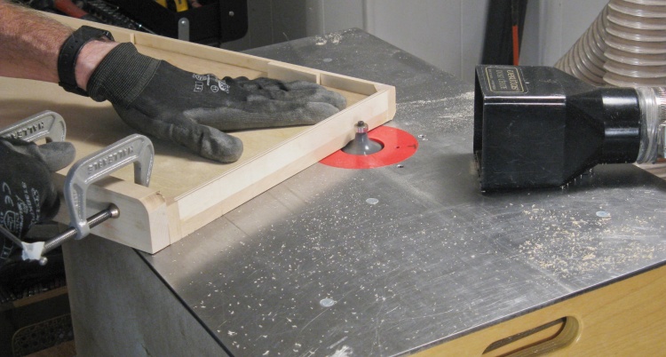 The next step was to route the 1/4" grooves in opposite corners. This was done in the same manner as the other frame pieces, except these were too short to use the featherboards.