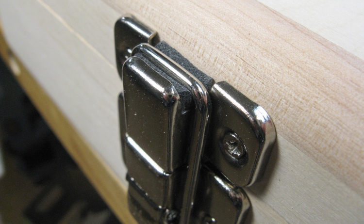 And this shows the latch closed, with the wire bail pressing into the foam for rattle-free operation.