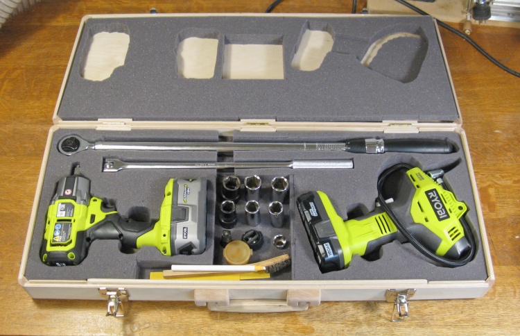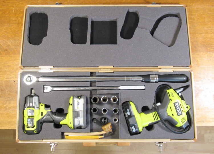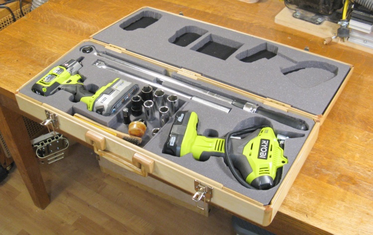 Later I bought both a cordless torque wrench and an inflator to simplify things further. Of course the shapes of those tools are different than the old ones so they wouldn't fit in the original case without heavy modifications. Plus there was that sticky-outy torque-setting wrench issue too. I did honestly try to find a commercial case that might work, but most are square-ish while longer specialized ones like rifle or fishing rod cases were much too long. Musical instrument cases didn't work out either so it was time for a "roll your own".
