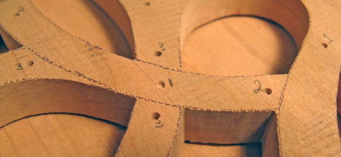 The openings were then more-accurately sized using a combination of spindle sander, files and sandpaper. I made curved wooden forms with a variety of diameters to work as forms for the sandpaper.