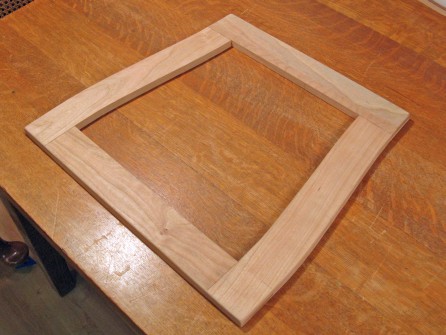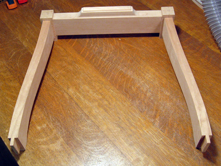 Once this assembly was done, I was able to complete the curve shaping by blending the leg curves into the rail curves as mentioned above, using the spindle sander and hand-sanding.