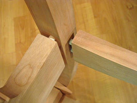 The third step was to assemble the three-sided seat rail assembly made above to the rear legs and rear seat rail. As mentioned previously, the rails connected to the rear legs using pins fitting into blind holes drilled in the rails and the legs.