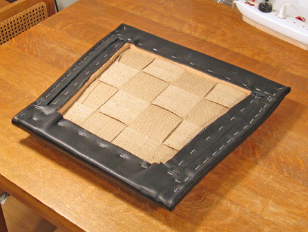 The shots below show the bottom side of the seat with just the burlap covering, and then with the full leather covering applied.