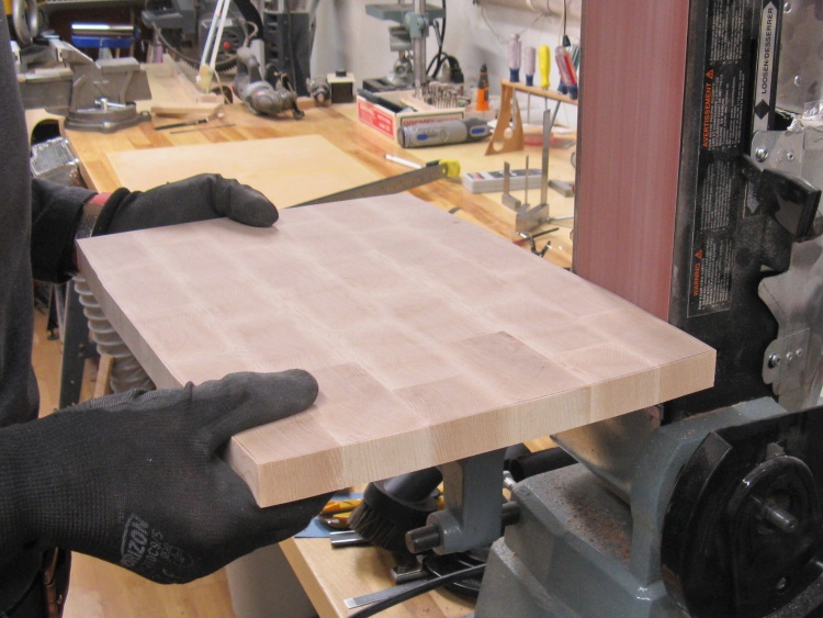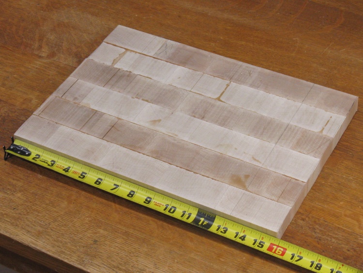 There was just over 6" of laminated wood available so I was able to cut that into six slices that were 1" thick which provided enough area for a decent-sized cutting board.