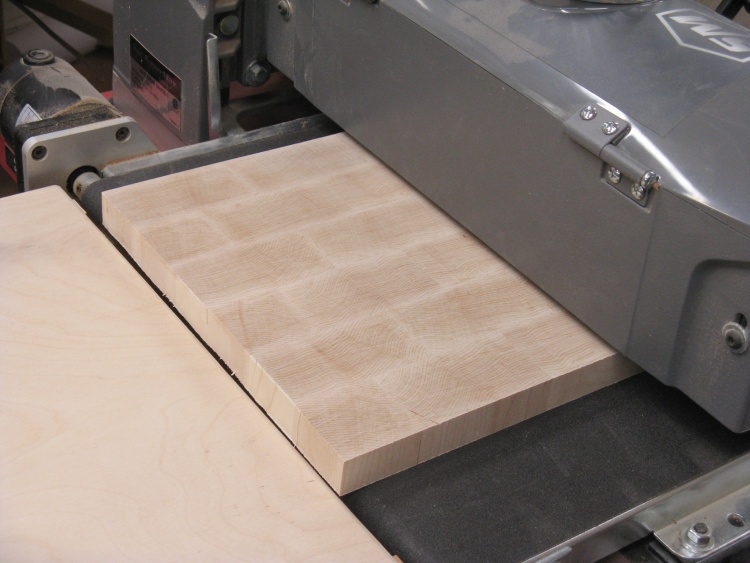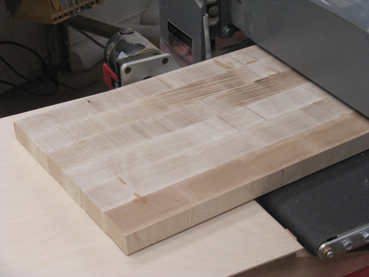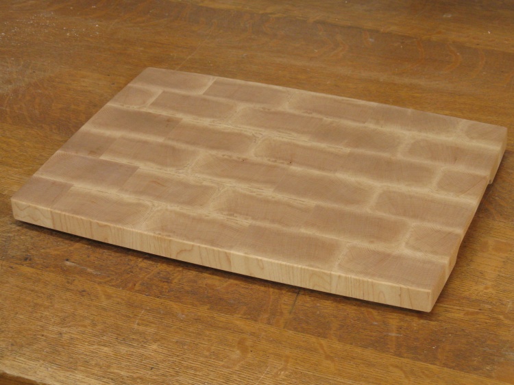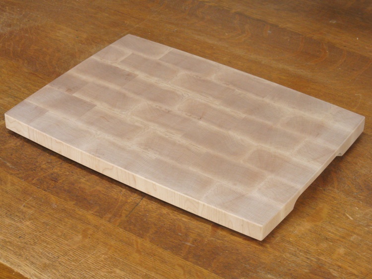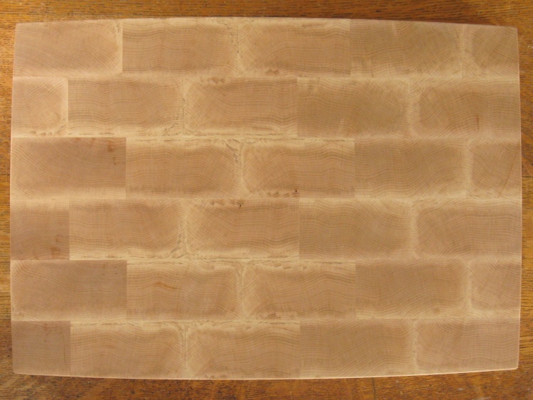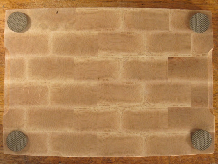 As described on the main page, this cutting board was made from the leftovers of the original larger cutting board. I had found conflicting information about the susceptibility to cracks between thinner and thicker butcher-block constructions so I thought it would be a good idea to try a thinner one as well.