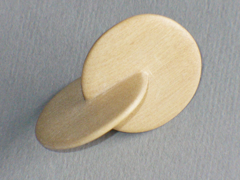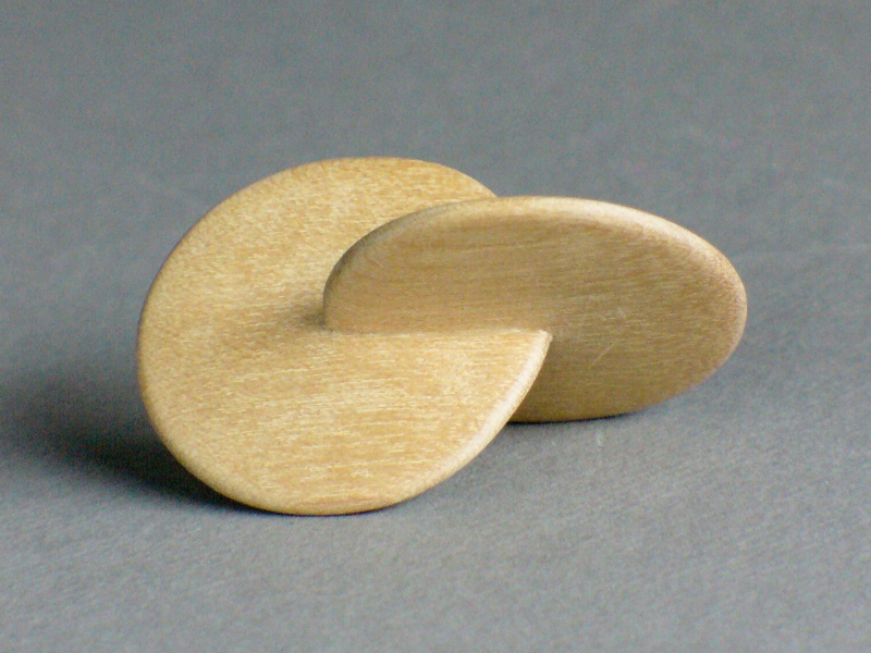 This little item is pretty much my first effort at woodworking. It is made from a piece of 1" dowel. The interesting thing is that it rolls in a wobbling fashion. The "design" was based on an odd construction set I had as a kid. It consisted exclusively of thin plastic octagons with a slot cut in each side. You could connect these by sliding them together at the slots so that you would have two pieces at right angles. You could thereby make long floppy things, or squarish things, etc. I noticed a similar set in my adulthood, which I bought for a nephew. Unfortunately, 10 or 15 minutes of playing with these pretty much exhausted all the interesting permutations of ways they could connect - much less fun than Tinker Toys or even Lego - but I digress. At any rate, if you put two of these octagons together, they would roll in a wobbling fashion