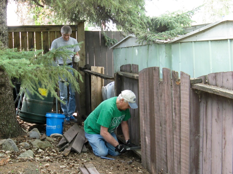 The disassembly of most of the fence took only about 90 minutes, including stacking the wood by the shed. Ray pulled apart the rest a couple days later.