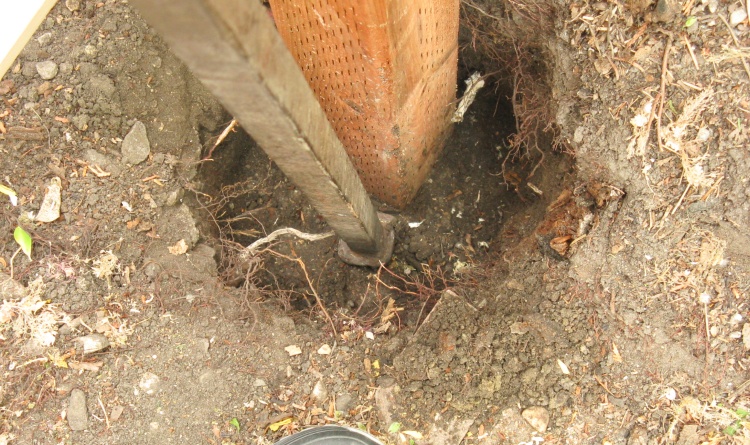 I was setting up to pull out the last post but it seemed loose so after a bit of wiggling I was able to actually pull it out of the ground by hand. It was a pretty slow-mo operation, so it just needed the Six-Million-Dollar-Man di-di-di-di sound effect to be perfect. At any rate the neighbours watching were impressed.