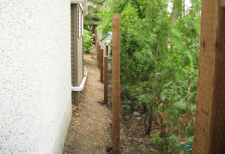 I of course had an elaborate fence design in mind for the North side but my only real criterion was that I wanted a fence that didn't need a finish applied so with that proviso told the neighbours that we could build anything they liked. They had a nice seating area bordered by the fence and thought about what they would want to see there and after surveying the options they decided on a tall picket design. It was almost painfully simple in comparison but at least would be easy to build and repair.