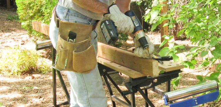 Rather than use the convenient but ugly metal brackets to attach the rails to the posts, we used screws designed for attaching composite decking. They are thin enough to drill through without splitting the wood and have a small head so they embed themselves in the wood and become invisible.