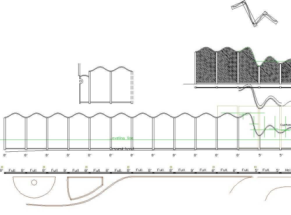 The curves made in the previous section cover most of the fence, but a few different curves were needed for where it transitions from high to low.