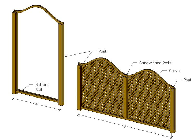 To hold the lattice, the top curve, the posts and the bottom rail are all grooved and the lattice just slides in.