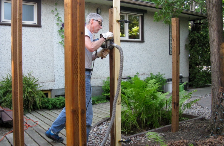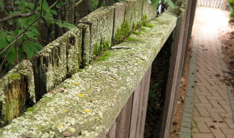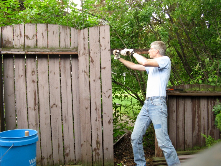 On the other hand, it was made of rough-cut 1"-thick planks with an incredibly durable stain. We assume the fence is 40 or more years old and we haven't stained it in the 25 years we've been here. Of course the color is an odd purpley-reddish with some sections heading toward bluish so the color durability is a bit of a mixed blessing."