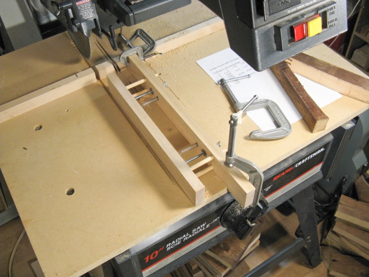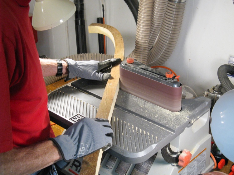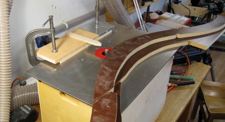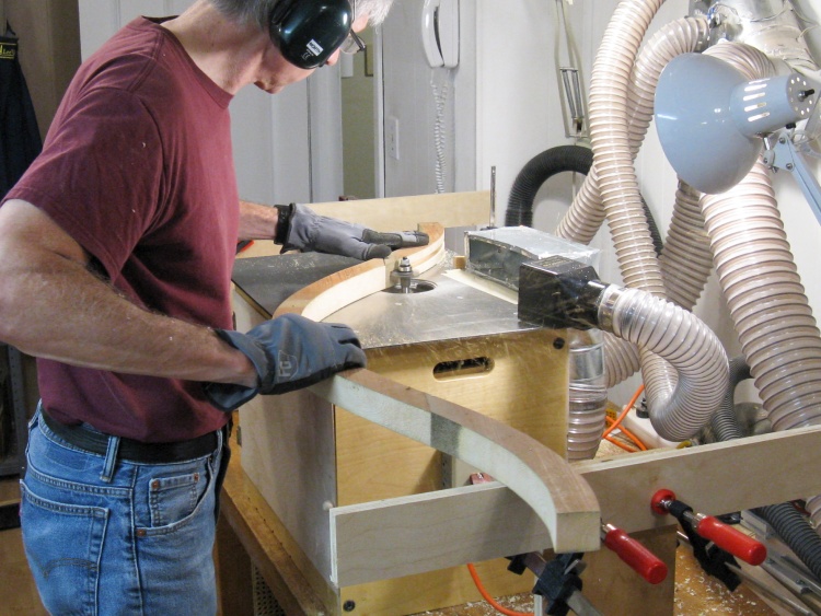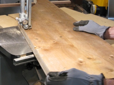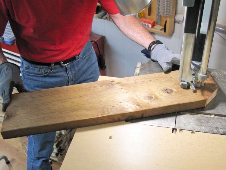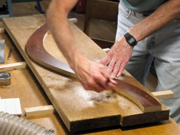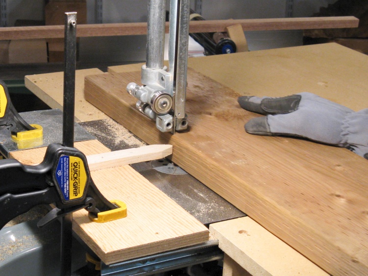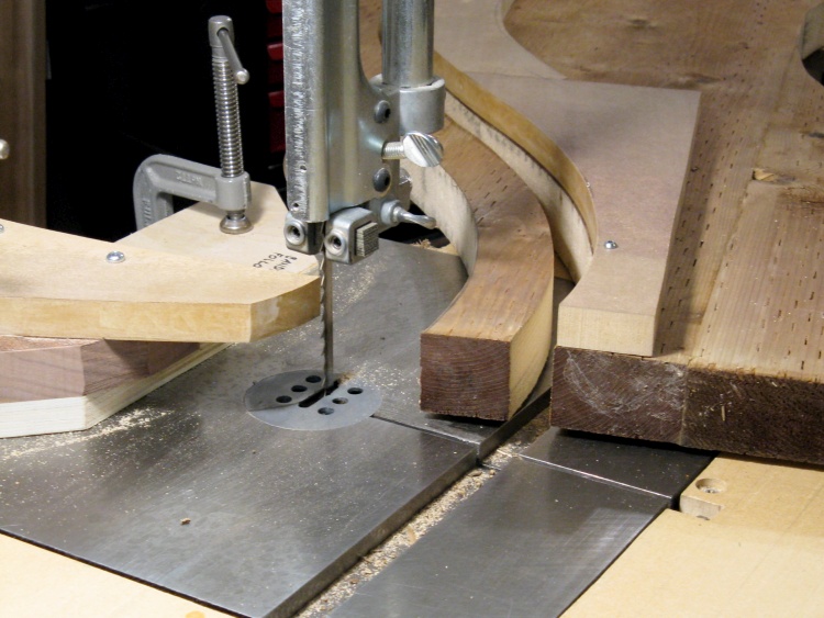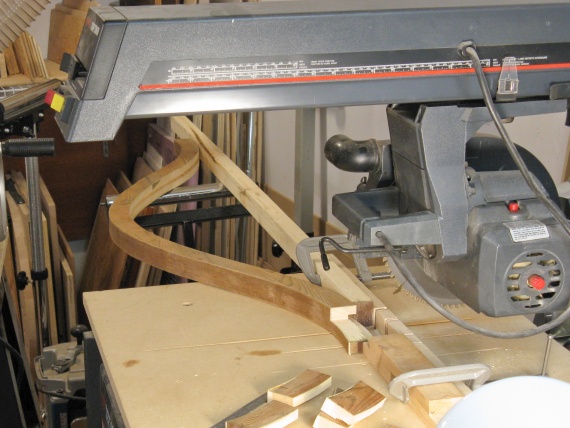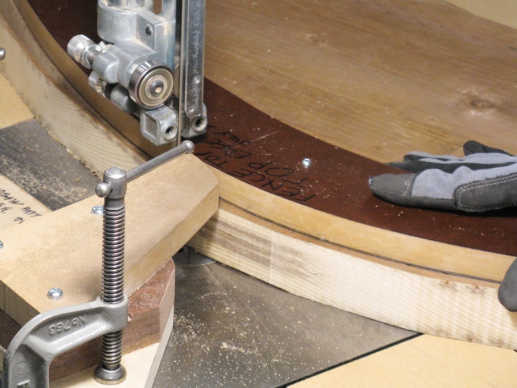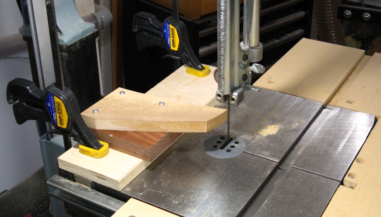 Step 2 was to cut the top of the curve using the pattern-following jig on the bandsaw.