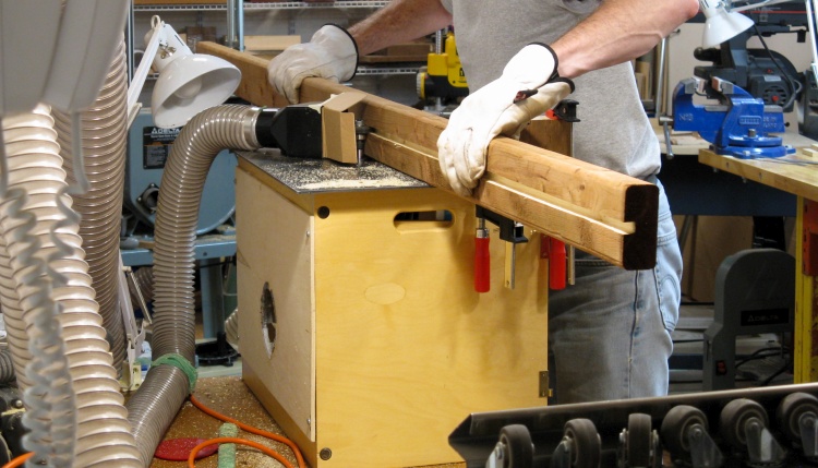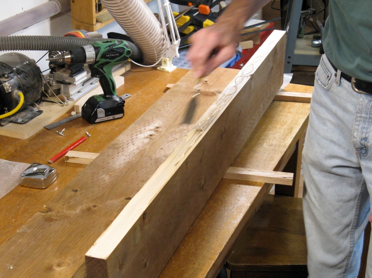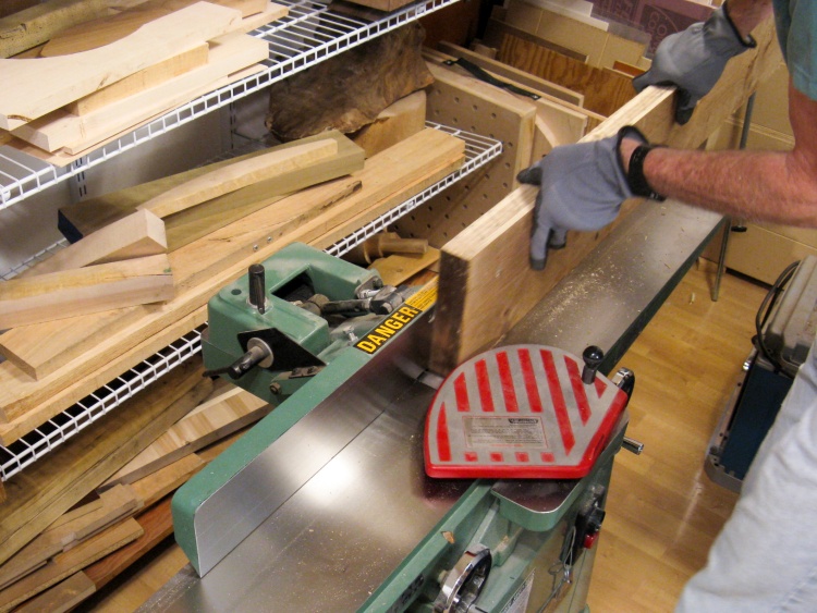 The 2x8s were run through the jointer to produce straight edges for a nice tight joint when edge-laminating.