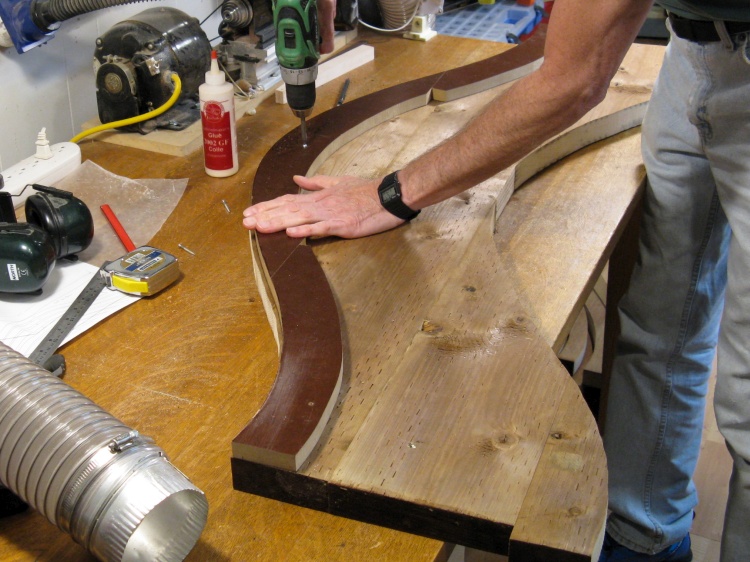 The next process was to glue on the thin strips I had cut from the 2x8 edges (which I'm calling curve caps).