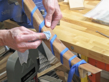 This photo shows my four straps engaged in clamping four caps to four curves. The straps could come off after about an hour to be used for the next set.
